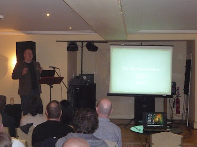 Next Mike Hallowell took to the stage. He warned at the start of his lecture that it was not really suitable for children and that he would be discussing some quite disturbing things, and he wasn’t joking either! Mike’s talk was about an ongoing case of a family who were being plagued by poltergeist-like activity that clearly had malicious intent and was far from friendly. However Mike put the activity down to a demonic entity from folklore know as a Brag, as some of the activity fitted in with this. This activity unexplained sounds and footsteps, laughing and voices heard over the telephone or actually in the household, fires which had burst out of nowhere, and a cloud like mist which was witnessed in the hallway that actually rained urine all over the floor and stairs, before hoof like markings appeared walking up the stairs one step at a time. The entity appeared to be linked to the family rather than their home, as it had also followed them out of the house on numerous occasions. The most disturbing incident of all was where one of the family had been beaten around the face by an invisible assailant while Mike was speaking to another family member over the phone. He played the unpleasant audio recording of this conversation, as well as a number of EVP (Electronic Voice Phenomena) recordings. One of the most impressive aspects of the case was the fact that the police had got involved and had not only witnessed some of this activity first hand, but had allowed for their identities to be revealed. This certainly aided in backing up the validity of the case.